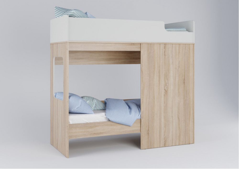 Классическая детская двухъярусная кровать с двумя параллельными спальными местами размером 1750х750 и 1900х750.